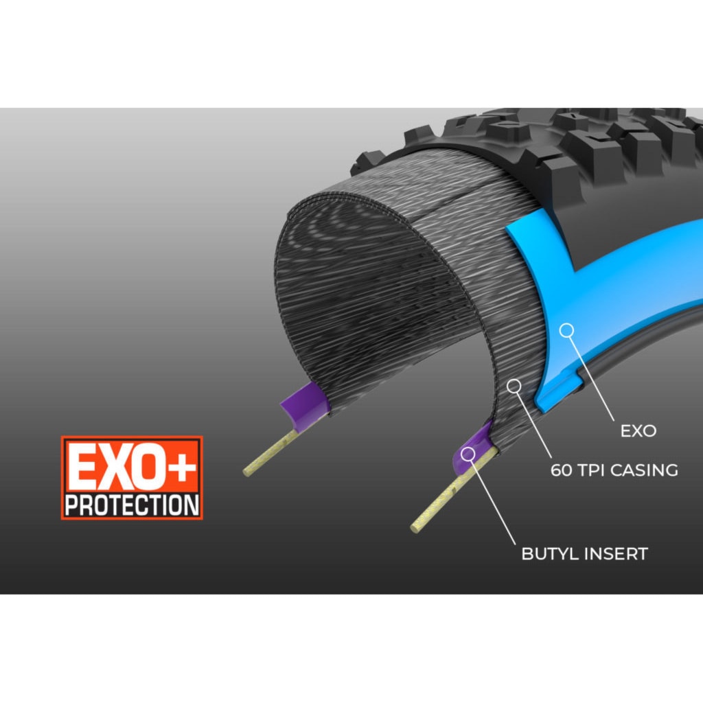 Zaktualizowana ochrona od Maxxis, idealna do wszechstronnego użytku na trailach oraz w lekkich rowerach elektrycznych. Podstawę stanowi opona 60 TPI, który w ściankach bocznych uzupełnia legendarny materiał EXO, odporny na przebicia często powstające podczas kontaktu z kamieniami czy korzeniami. W obszarze stopki umieszczono butylową wkładkę, która zapewnia dodatkową ochronę obręczy.